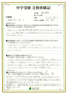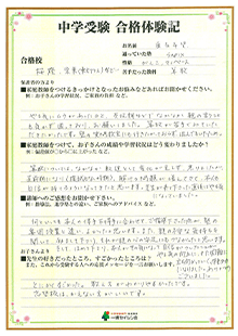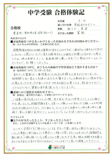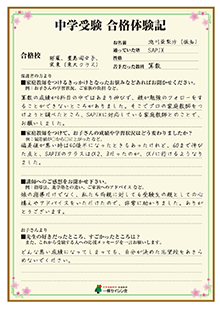 当会には、遅い時期から中学受験対策を始めたにも関わらず、第一志望校に合格したお子さんがたくさんいます。(詳しくは、「合格体験記」ページをご覧下さい。)